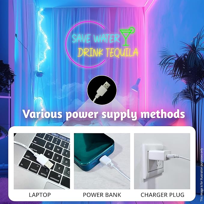 - Vibe Check: Save Water Drink Tequila Neon Sign gives the good vibes. Its unique design of the tropical color aesthetic and the funny memes presents both hilarious and tasteful. Your space gets more attractive to your friends, family or customers.
