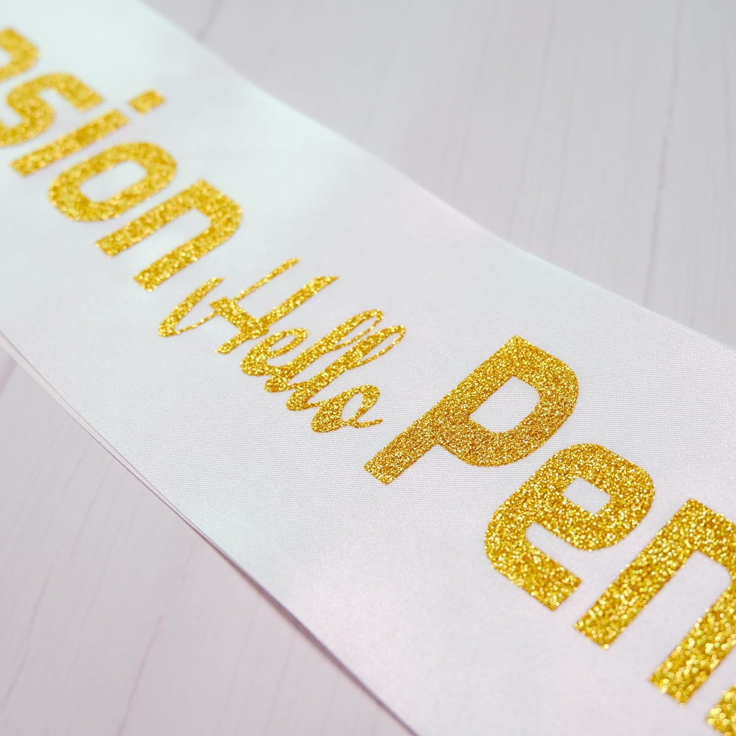 One Size Fits Most: Bold glittery gold lettering declaring 'Goodbye Tension Hello Pension' shines on a crisp white sash—durable, lightweight (33.5"x3.74") to flatter all body types for parties, photos, or proudly declaring 'I'm retired!'