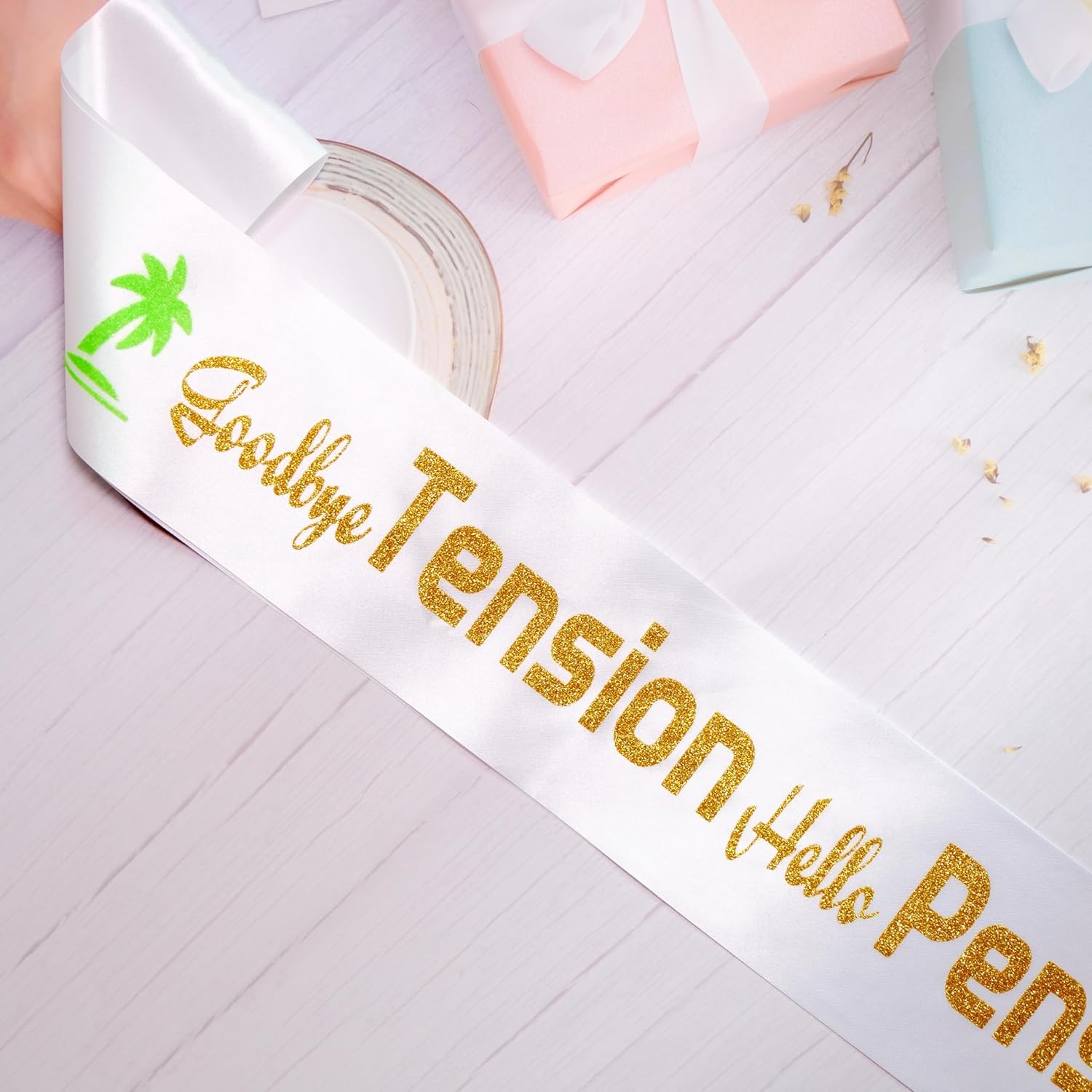 - Retired sash for Women and Men 2025: Celebrate the start of 7-day weekends with our fun sash "Goodbye Tension Hello Pension"—perfect for co-worker retirement parties, employee last day, office farewells, vacation-themed trips, or celebratory dinners